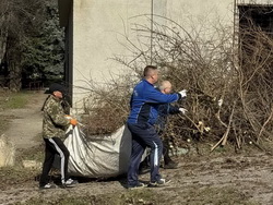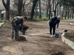 адресу: г. Тирасполь, переулок Горплавни 2а. привели в порядок прилегающую территорию (сквер) от листвы, лишних порослей – убрали мусор, провели побелку бордюров, провели весеннюю подрезку деревьев,