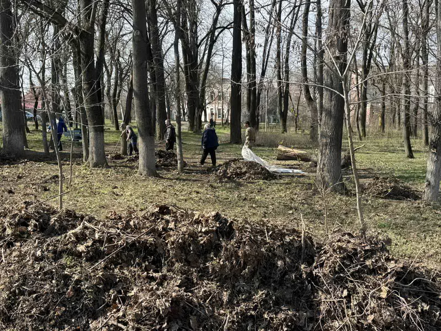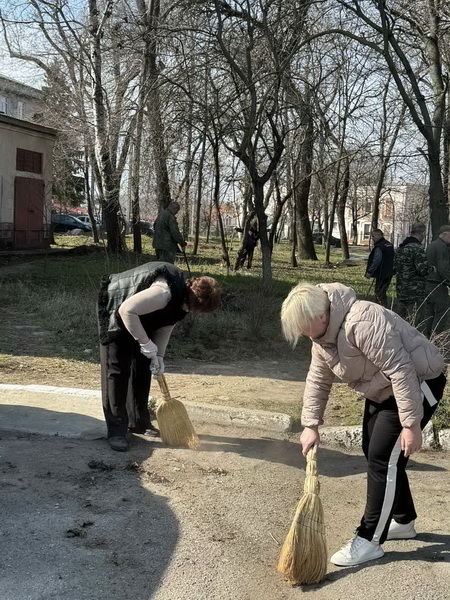 адресу: г. Тирасполь, переулок Горплавни 2а. привели в порядок прилегающую территорию (сквер) от листвы, лишних порослей – убрали мусор, провели побелку бордюров, провели весеннюю подрезку деревьев,